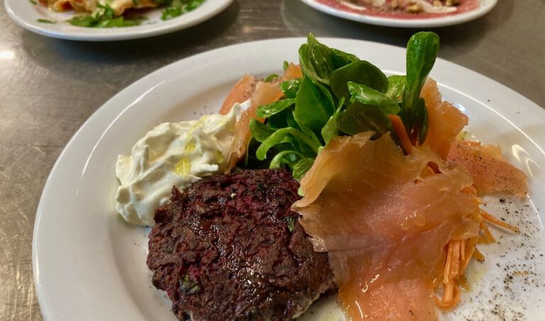 Rote-Rüben-Rösti mit gebeiztem Saibling